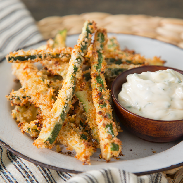 Lighten up your plate with a healthy side dish of crispy zucchini fries—the perfect alternative to the French fry!